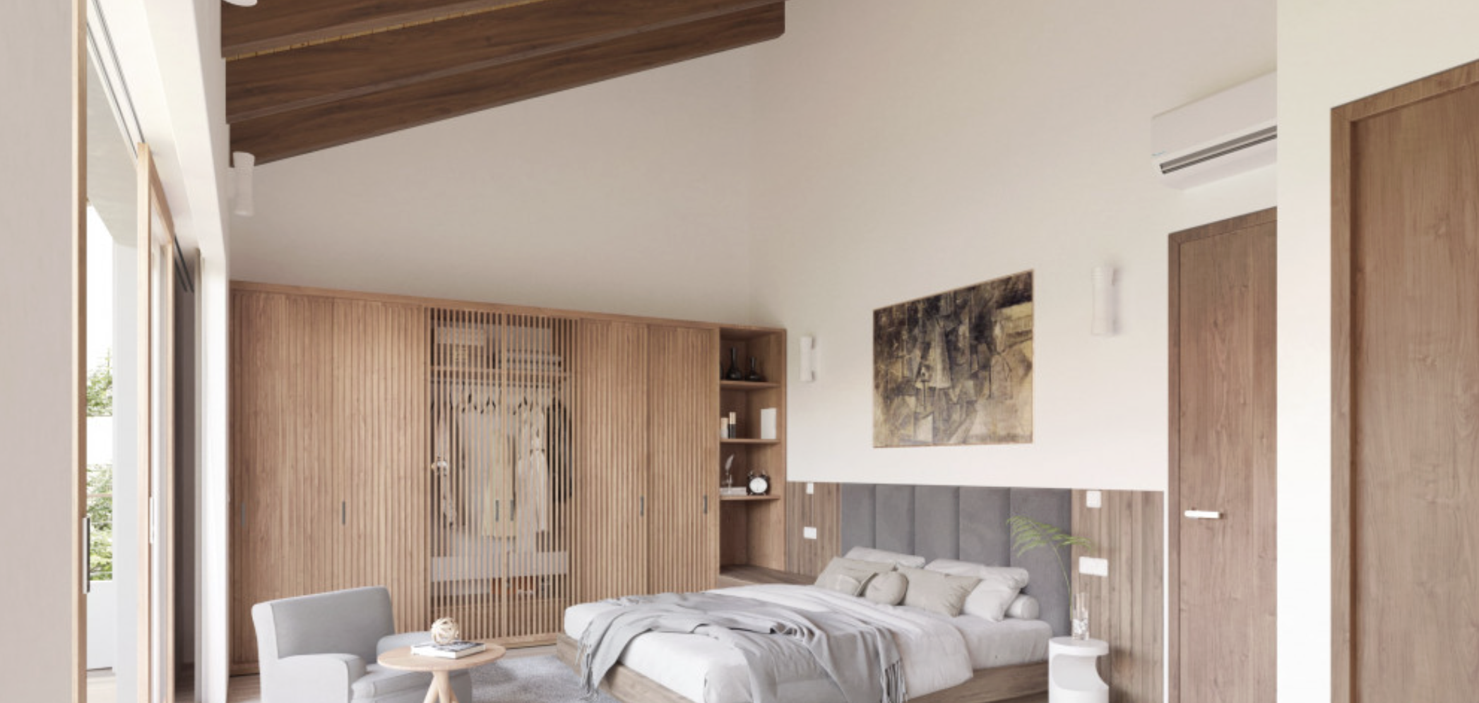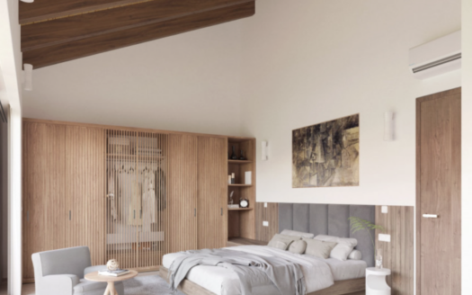 La villa s’étend sur un vaste terrain et comprend trois chambres spacieuses, chacune avec sa salle de bains privative. Les espaces de vie ouverts et lumineux se prolongent naturellement vers l’extérieur, parfaits pour se détendre ou recevoir.